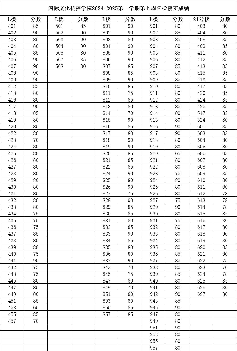 91club 2024-2025学年第一学期第七周院检寝室成绩汇总