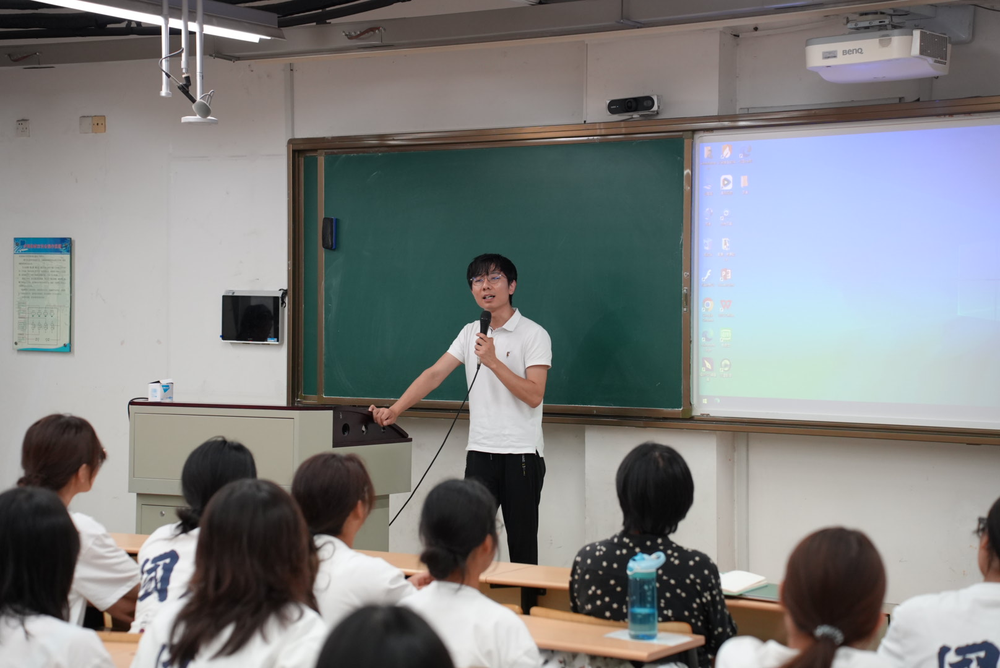 张明芳老师以优秀毕业生事迹为案例,向新生展示如何充实的度过大学四年,激励着他们勇往直前。