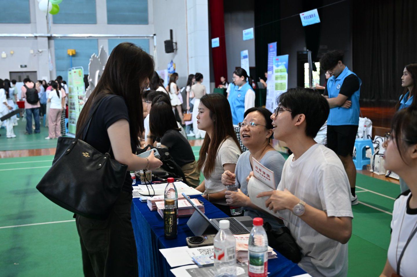 迎新现场,“国传蓝”志愿服务马甲依旧是最亮眼的风景——数百名志愿者穿梭在校园各处:帮拎行李的“搬运小能手”、指引路线的“校园活地图”、讲解打卡规则的“任务向导”……学院专设“绿色通道”服务专区,为有需要的新生提供一站式咨询与帮扶。同时贴心准备“国传清凉关怀包”,内含便携小风扇、清凉湿巾、饮用水及防暑指南等。