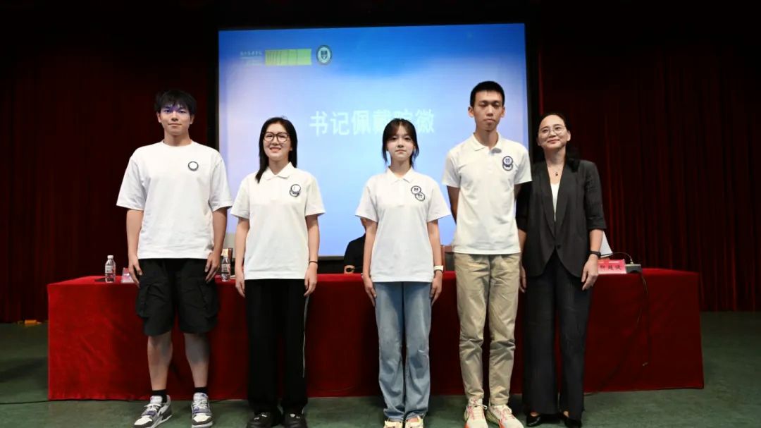 党委书记陈斌为2025级新生代表佩戴院徽。当崭新的院徽别在胸前,标志着2025级新生正式成为国传大家庭的一员。