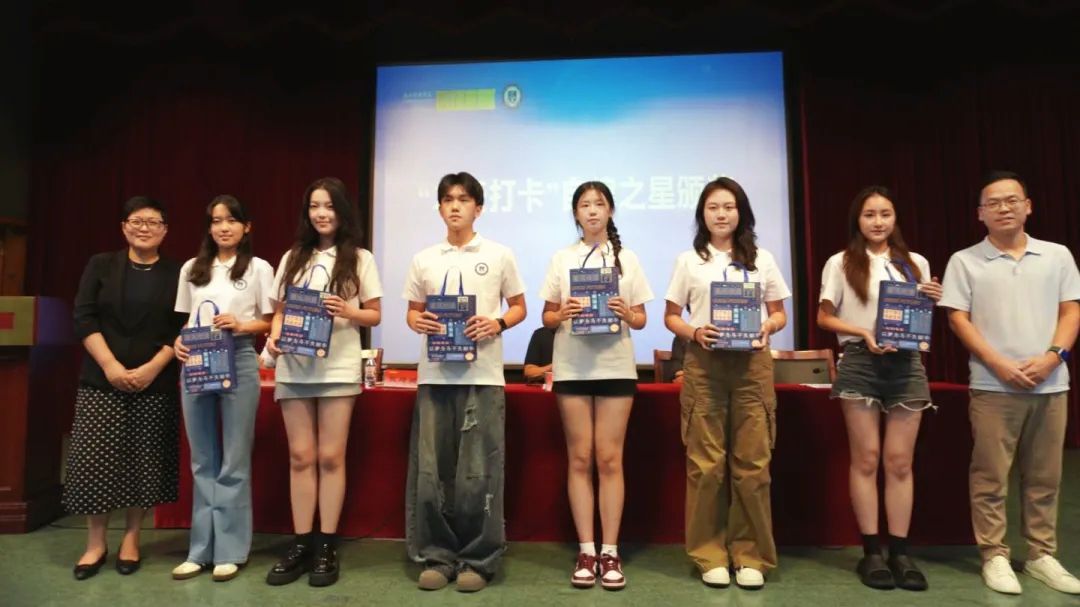 副院长倪琦珺、柳超健为参加暑期“21打卡”活动的优秀学生代表颁发“自律之星”奖品,鼓励全体新生以榜样为镜,在大学阶段养成良好习惯,为成长筑牢根基。
