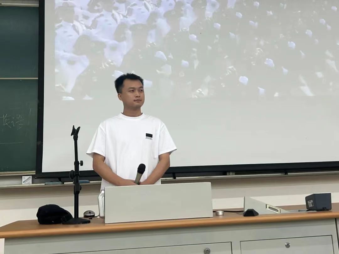 为了鼓励新生认真参与军训,提高军训积极性,23级辅导员、退伍军人赵晓健老师为新生们介绍了自己两年的部队生活、训练的经历,特别分享了军队中严明的纪律生活、战友间的深厚情谊、军人的责任感与担当等。他告诫即将进行军训的2024级新生要有集体荣誉感,树牢“连兴我荣,连衰我耻“的意识。