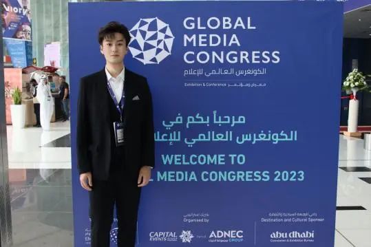 (国际教育学院)20双语播音4班的学生代表李少泽作为学校代表参与到了本次大会的讨论当中。他表示,本次大会以“塑造媒体行业的未来”为主题,为期3天的展会中,他感受到了各个媒体组织在主题阐释时视角的多样性。