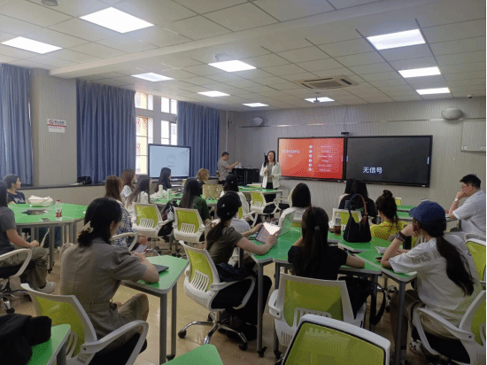 王琳教授担纲。她以全英文授课形式,从跨境电商核心术语解析切入,深入拆解亚马逊、TikTok Shop、SHEIN等全球头部平台的运营逻辑,并结合行业案例,剖析一名优秀跨境主播需具备的“硬技能”与“软实力”——从多语种表达能力、跨文化敏感度,到场景化营销思维、临场应变能力。学生表示:“全英课堂既挑战又实用,瞬间代入国际化职场语境!”