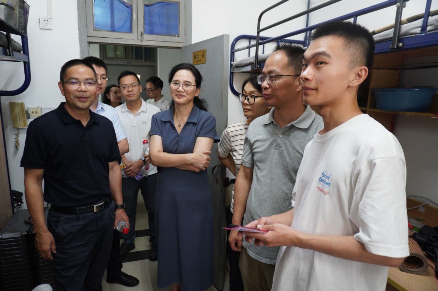 院长戴运财、学院党委书记陈斌、副院长柳超健、党委副书记吴德政、各位辅导员和班主任们第一时间走进新生寝室,从床铺舒适度到食堂口味,从课程规划到校园生活,事无巨细地叮嘱,用家人般的关怀,为新生们筑牢“校园避风港”。
