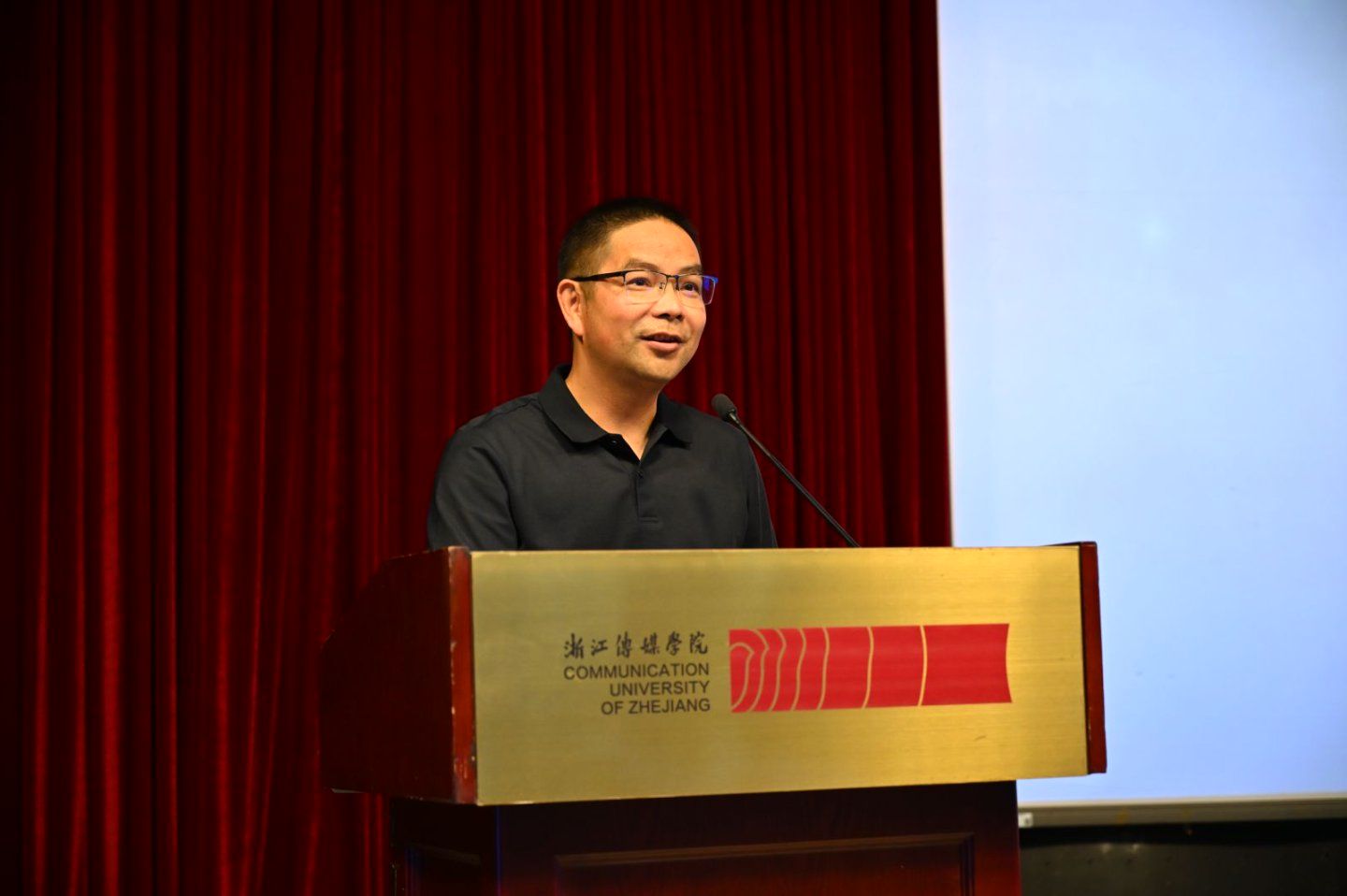院长戴运财代表学院全体师生向2025级新生致以热烈欢迎。他从学科融合、国际化办学、能力培养等方面带新生全面了解了学院的特色与优势,并结合国际传播领域的时代需求对新生提出了三点期许:一是以“开放心态”拥抱 AI,做“技术+内容”的融合者。要拥抱技术革新,善用AI等工具提升传播效能,同时坚守人文内核;二是以“跨界思维”提升能力,实现从“单一技能”到“复合素养”的跨越。要依托学校多学科资源,积极参与跨领域项目,成长为复合型人才;三是以“坚定初心”应对变化,在“不确定性”中找寻“确定性”。既要练就扎实学识和跨文化沟通能力,又要坚守内在的核心价值观,在复杂环境中明辨方向,担当起讲好中国故事的时代责任。