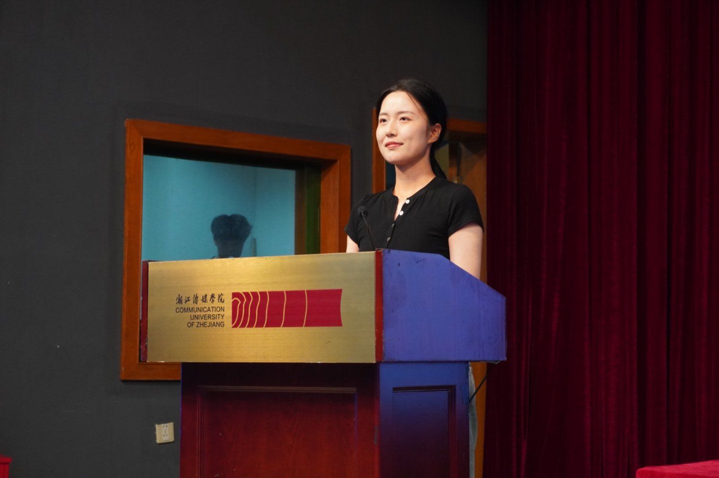 2020届双语播音专业吴钊作为校友代表上台发言。作为纪念中国人民抗日战争暨世界反法西斯战争80周年纪念活动中女民兵方阵的一员,吴钊分享了自己参加训练的艰辛经历以及受阅后的自豪之情,鼓励学弟学妹们要珍惜在校时光,夯实专业基础,锤炼品德修为,将“小我”融入“大我”,把青春奋斗的理想镌刻在民族复兴的伟大征程上。