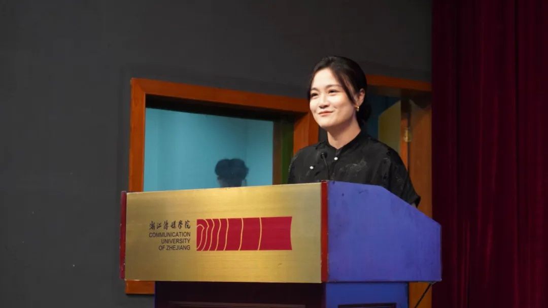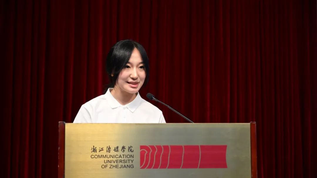 2025级传播学(中外合作办学)2班郭晨霆作为新生代表发言。她分享了能够成为国传人的激动与欣喜,并表达了对未来四年的愿望和憧憬,她希望与同学们一起深耕专业、提升双语能力,用实际行动传递中国声音,做有温度的国际传播人。