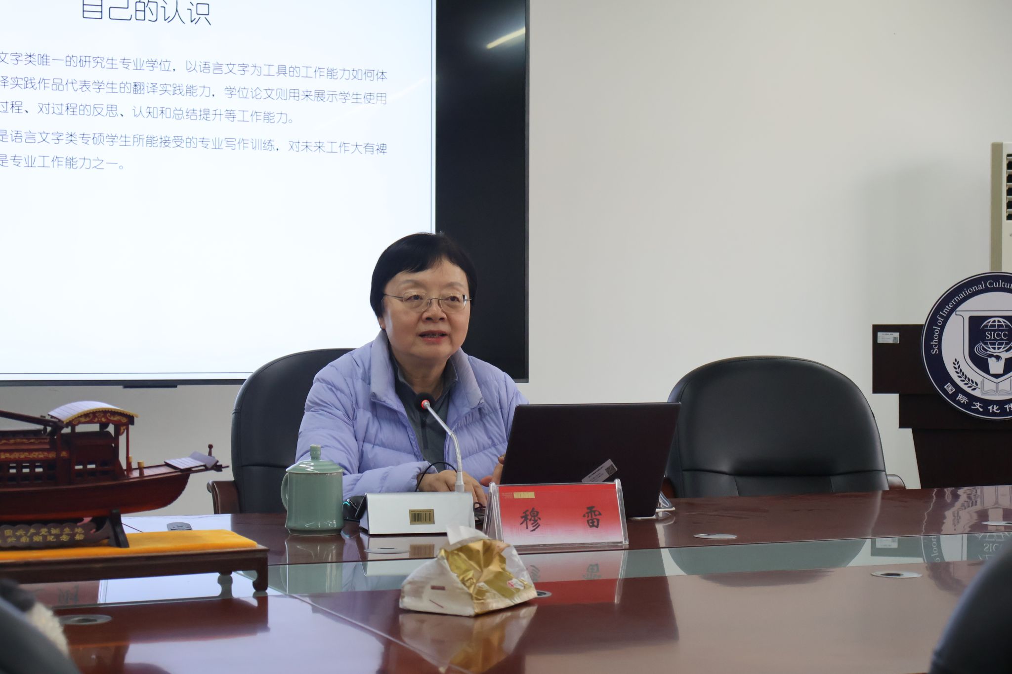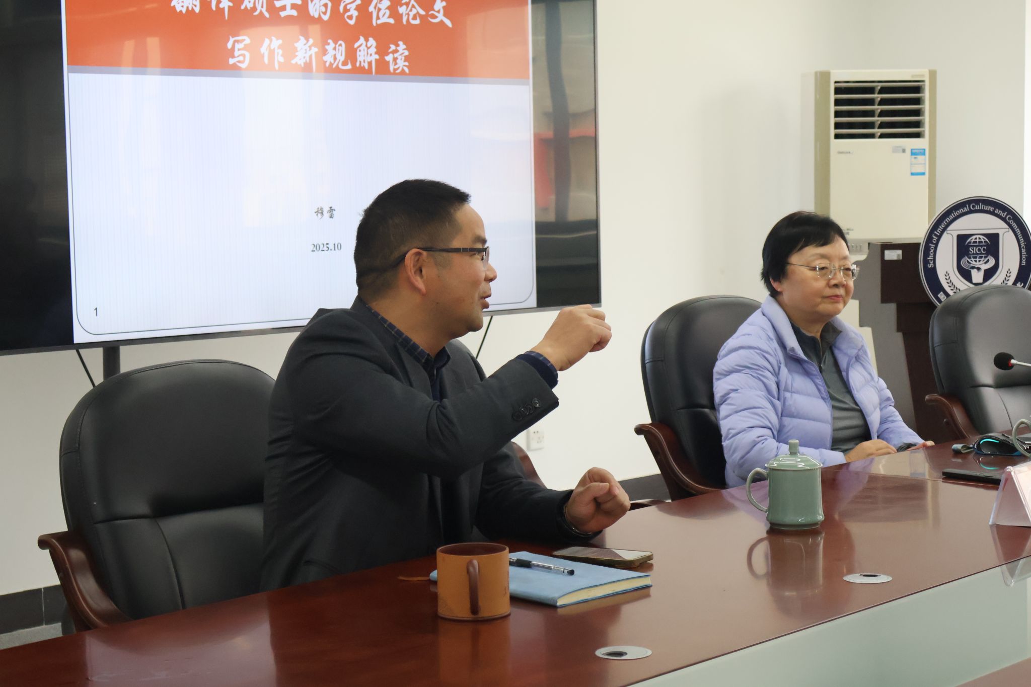 戴运财院长主持,特邀广东外语外贸大学高级翻译学院教授、博士生导师,中国译协翻译理论与教学委员会副主任穆雷教授,就翻译硕士学位论文写作的新规进行深入解读。