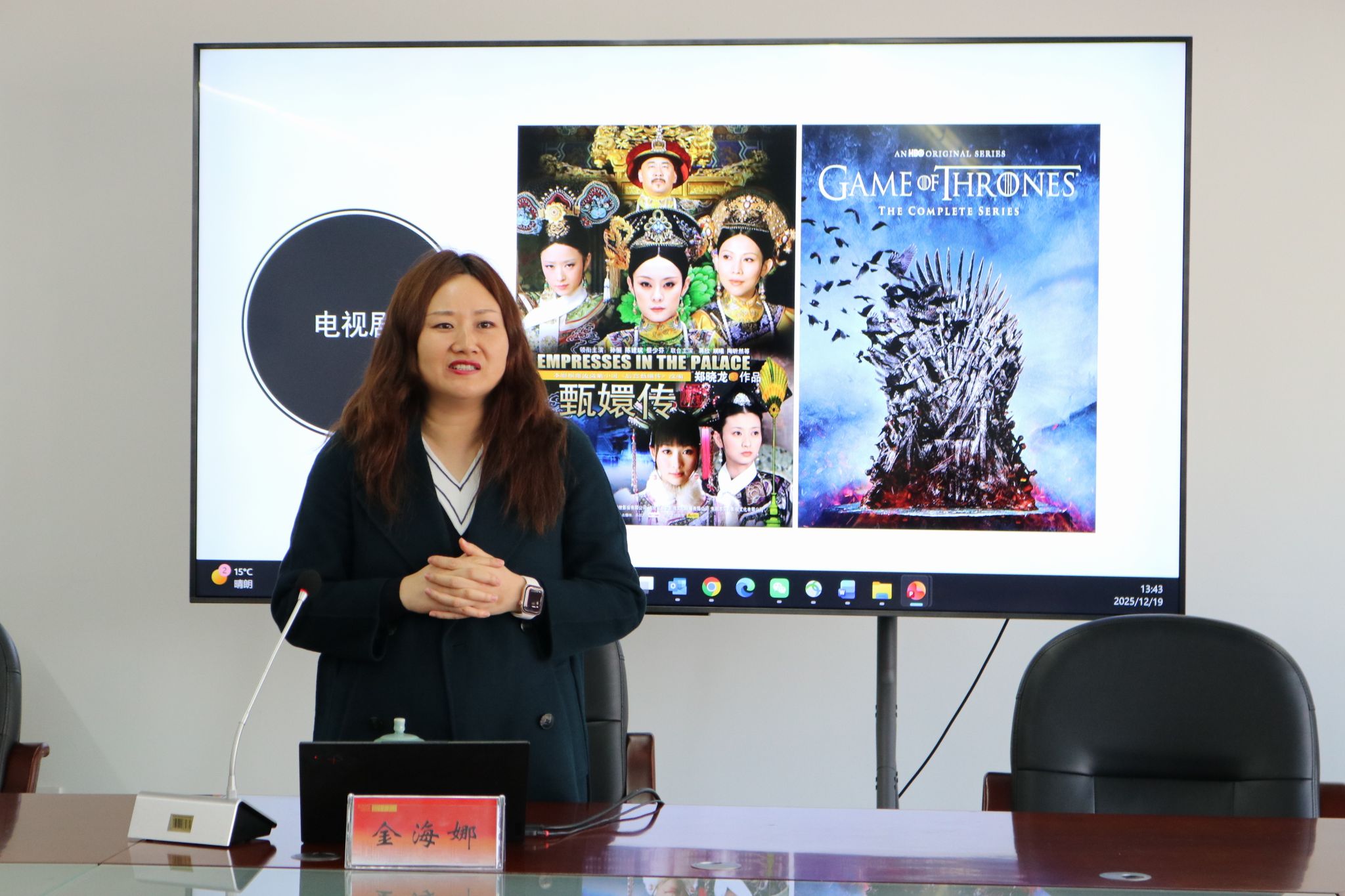 金海娜教授深耕影视翻译研究与实践多年,不仅是国家社科基金重大招标项目首席专家,更翻译一审了《满江红》《阿凡达》等多部影响力影视作品,出版著作12本,在国内外核心期刊发表论文30余篇。讲座中,她以自身实践经历为切入点,将理论与案例深度融合,让抽象的翻译策略变得生动可感。