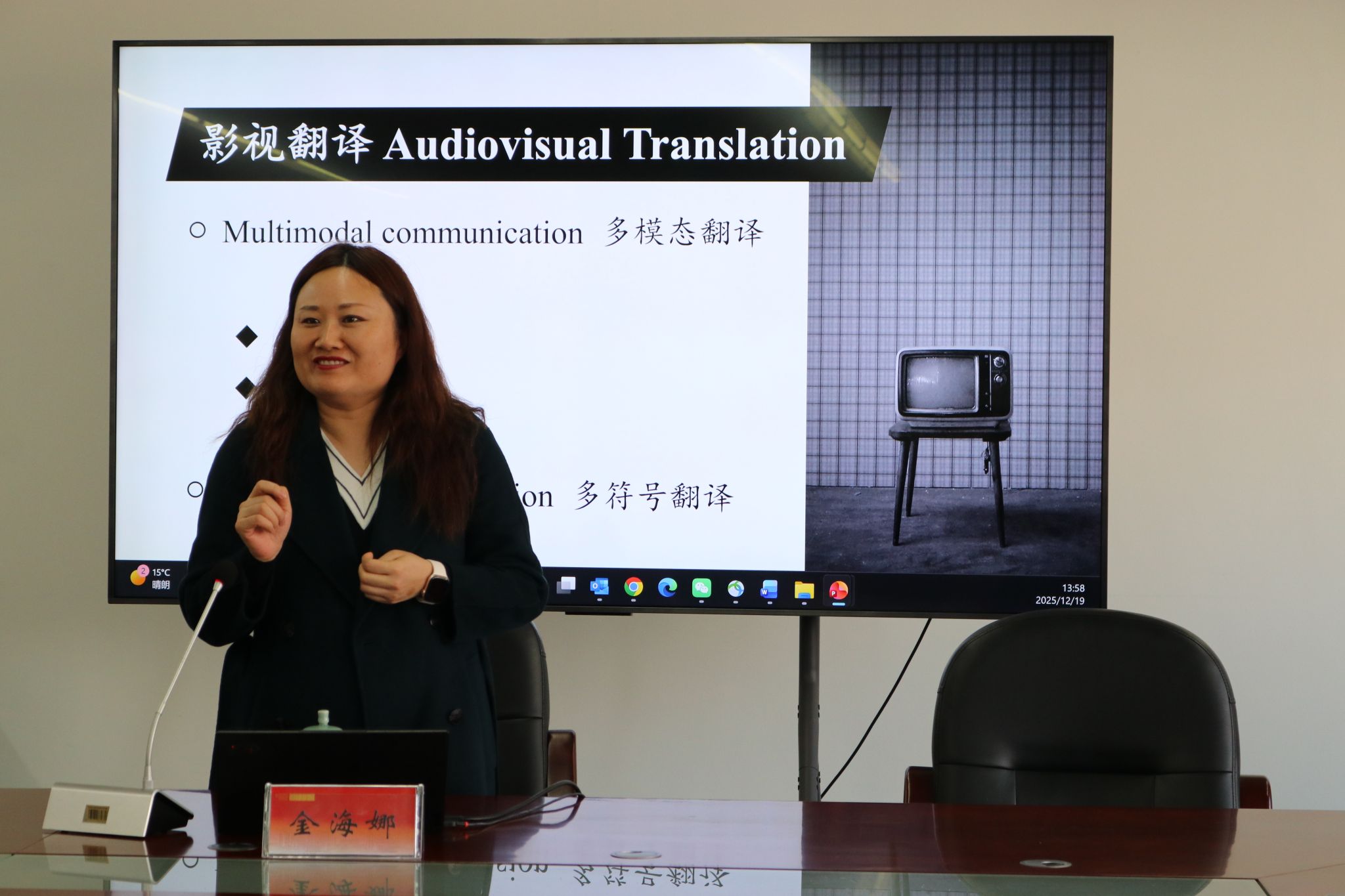 ,带来了一场主题为“影视翻译的实践、策略及中国影视国际传播”的精彩讲座,用丰富案例与深刻洞见,为师生们解锁了影视翻译的多元世界。