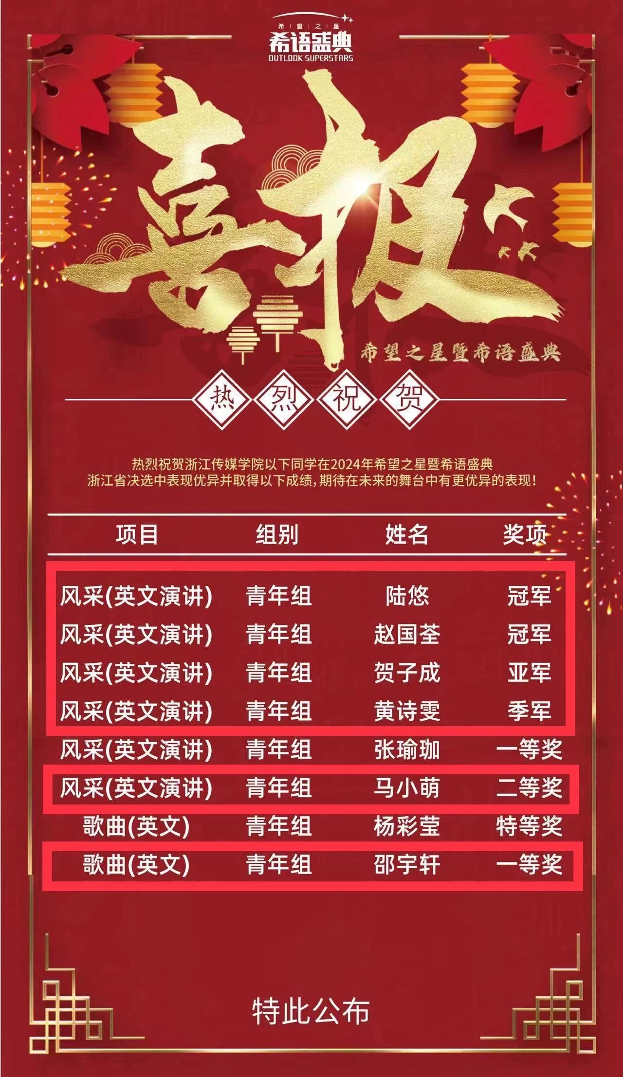 近日,希望之星暨希语盛典比赛浙江省决选结果揭晓。91club